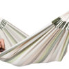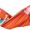 The hammock is 100% synthetic so no mould spots and is machine washable. It is also a generous sized hammock easily big enough for 2 adults and lots of scope for a single occupant to spread out because that’s what hammocks are all about.