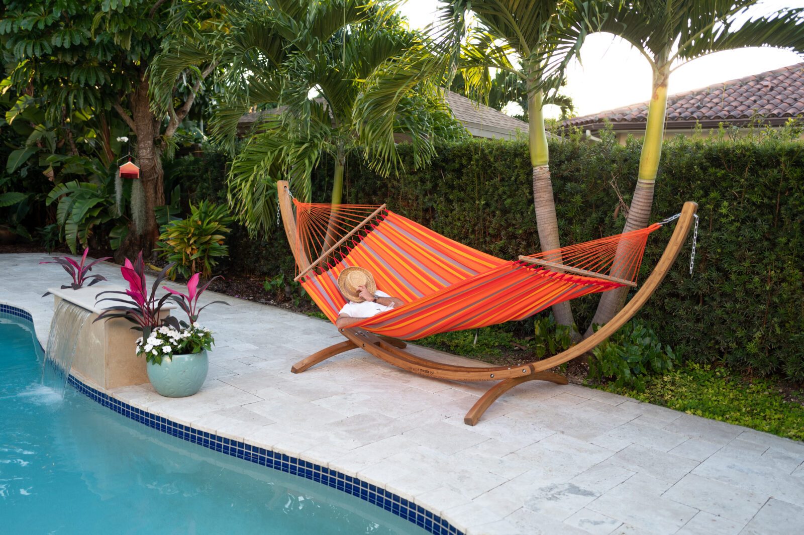 Double Spreader Bar Outdoor Hammock with Smile Stand Bundle