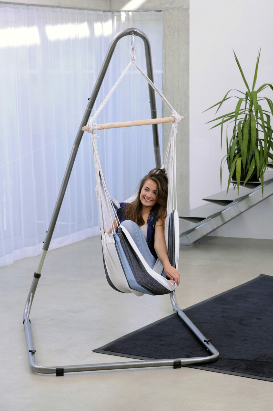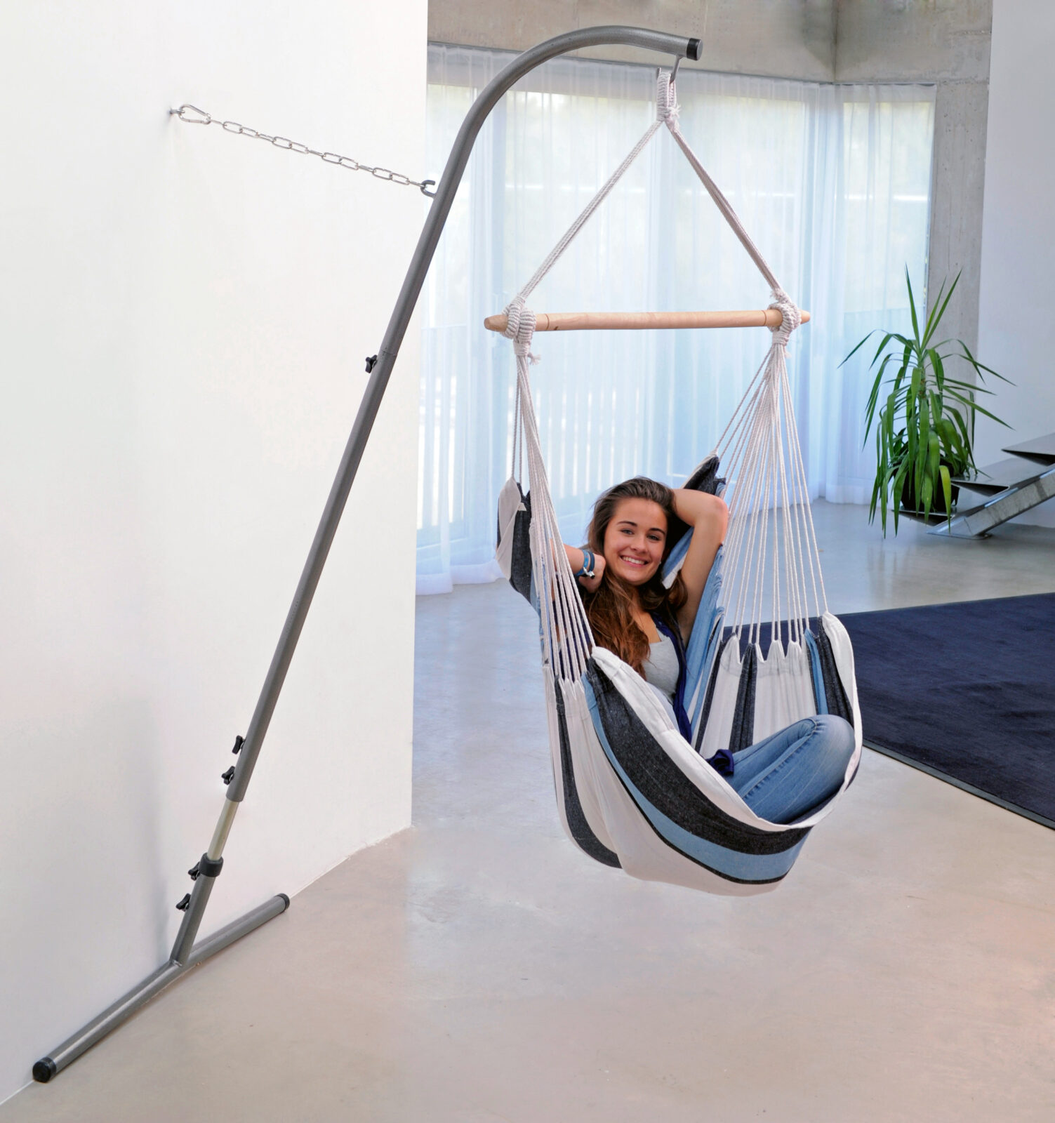 The Marine Chair is compatible with most of the Hanging Chair Stands on this website and there are also a range of accessories for hanging it or giving it a bit more bounce (go on the spring 🙂