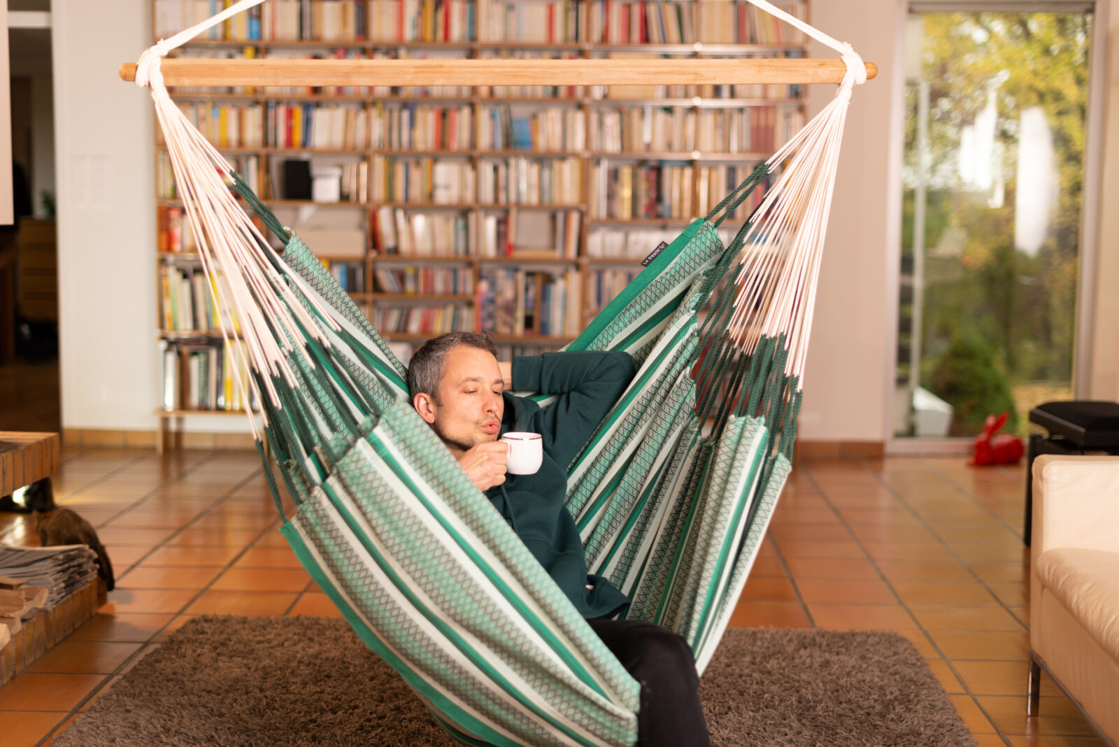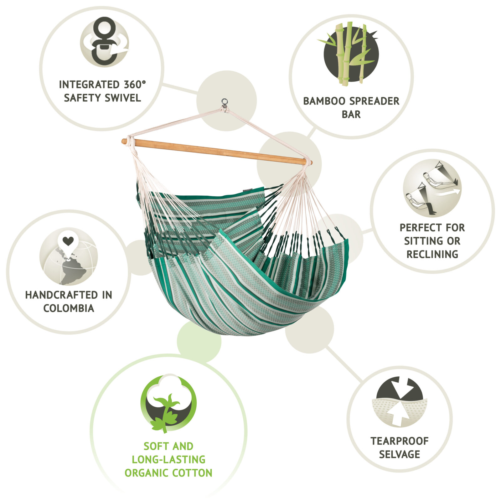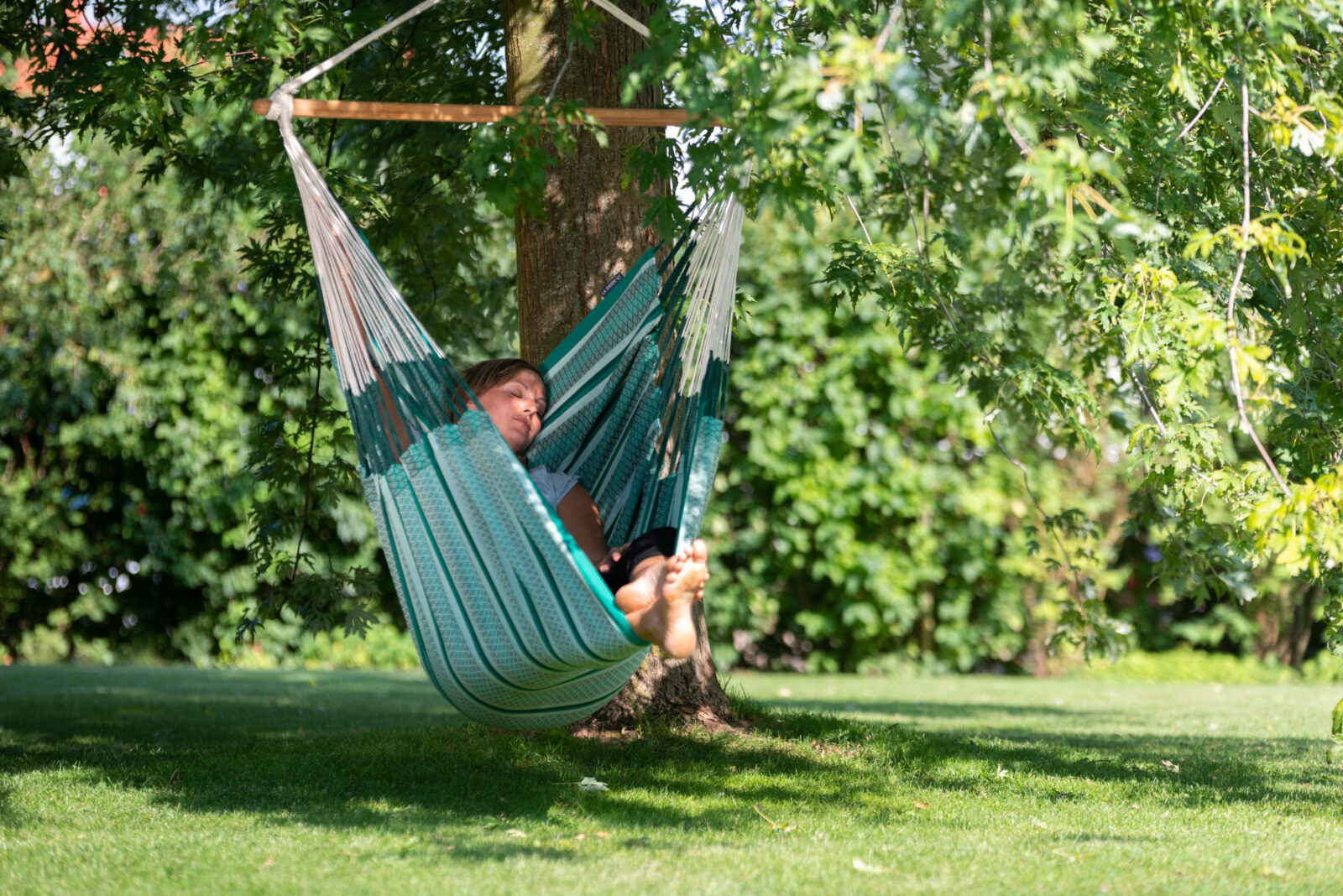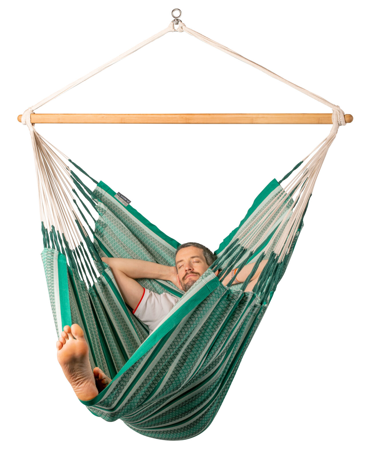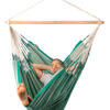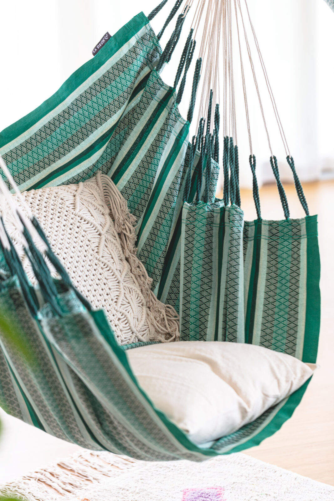 Let’s get straight to it’s best feature. It’s big! Big, as in 2.1m from head to toe and what that means is that you can get you feet up and that of course is the magic ingredient for comfort. You see, most hanging chairs are designed to be sat in like a normal chair where your legs dangle over the front but this beauty allows you to disappear into it. Also, it’s  actually very wide, 1.4m wide which means that your shoulders are not pinched and there’s a real feeling of space inside. As a place to kick back and endlessly scroll your phone or watch the footie it’s hard to beat. I personally did most of the World Cup from the Colombian Sunday Chair with the same dimensions, just class.