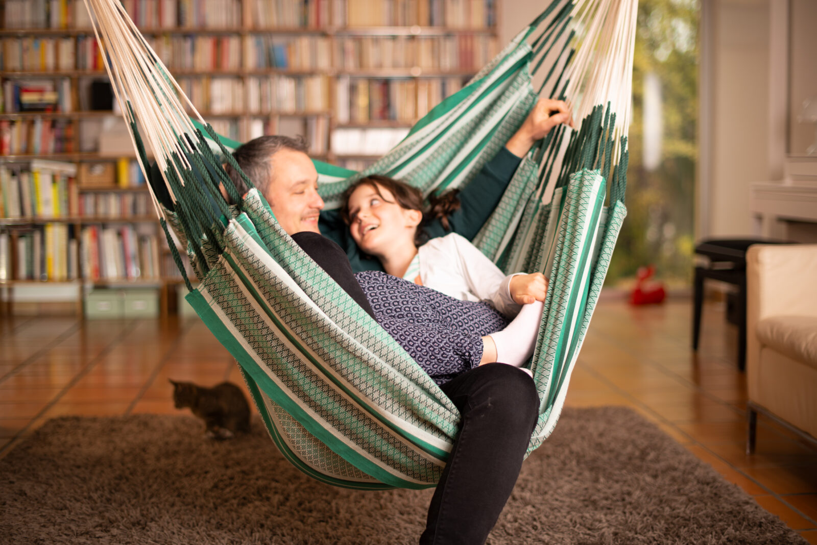 The multiple suspension strings distribute the weight evenly for extra comfort. Being cotton it is machine washable (tie the strings together to stop them tangling).