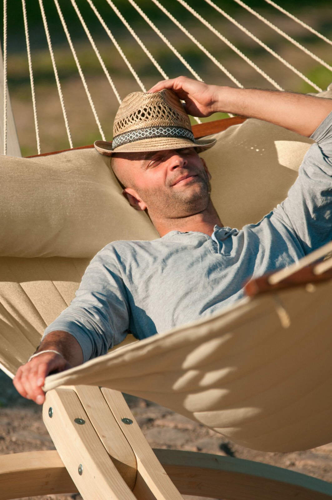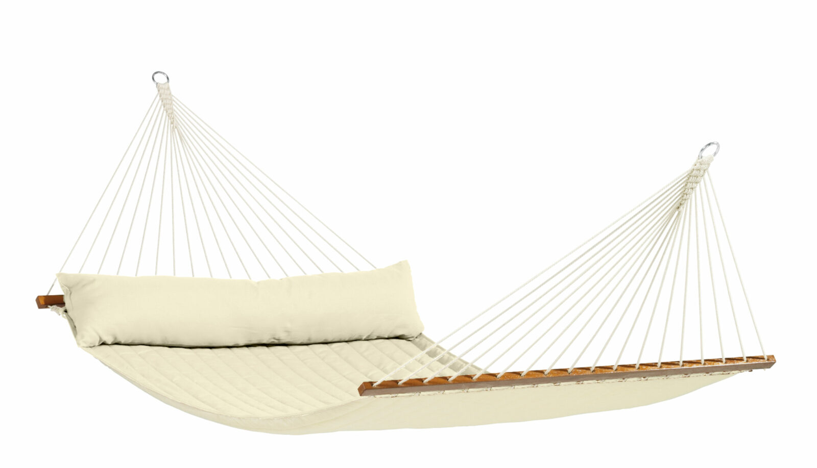 Those Yankees can teach the world a thing or two about comfort. This wonderful double hammock with spreader bars is padded throughout, has a pillow as part of the design and is made from a weatherproof fabric.
