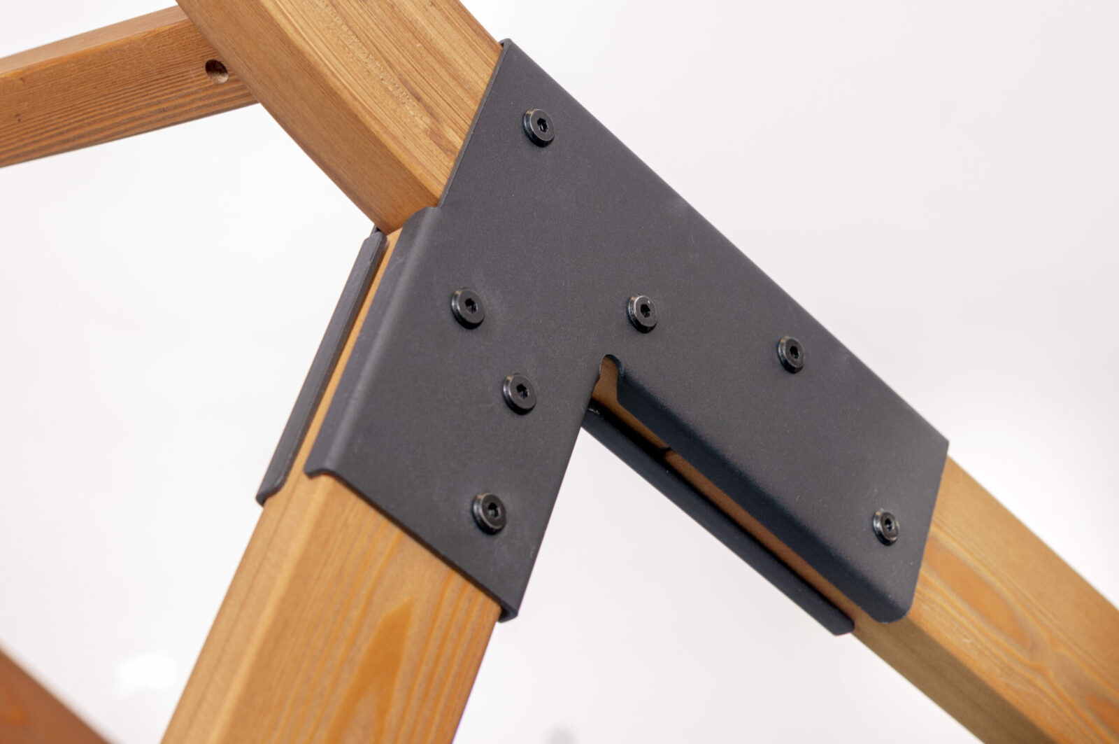 It’s made from sustainably managed and certified Siberian larch, which is a timber often used for cladding and other outdoor uses as it doesn’t rot as fast as most woods. It is constructed using a lamination and waterproofing method that gives it both strength and better resistance to the elements.