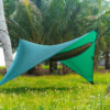 You will also understand that lugging loads of kit up and down hills is not the funist bit of hammock camping, so the new Lightest Tarp from Ticket to the Moon is just the job. It’s really high tech, personally, I’ve never seen such a compact tarp especially being full size and weighing so little. the specs are really impressive, have a look at the Tech Details tab above to get the full nerdy details. At the end of the day all you should care about is that it’s top of the range quality and weighs just 412g.