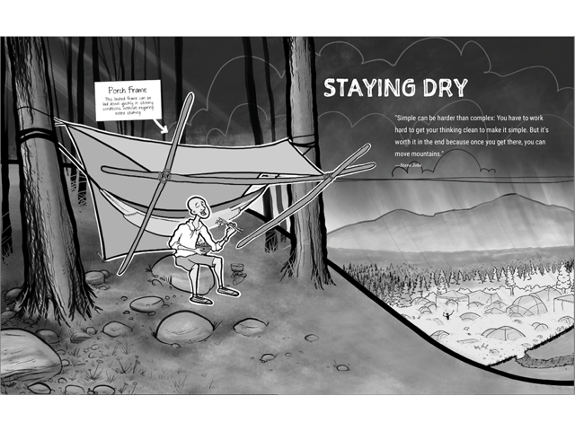 The book is illustrated throughout by the author, hammock guru Derek Hansen, clear detailed drawings make seemingly complicated rigging systems suddenly make sense and there is always a humorous take on the vagaries of hammock camping.